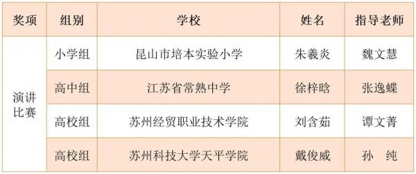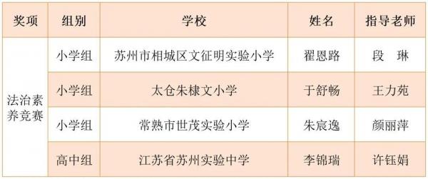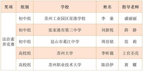 此外,在全体参赛选手和指导老师的协作拼搏下,苏州市代表队还取得了一等奖11名,二等奖8名的优异成绩,充分展现出苏城学子尊崇宪法、学习宪法、宣传宪法的青春风采和昂扬朝气。