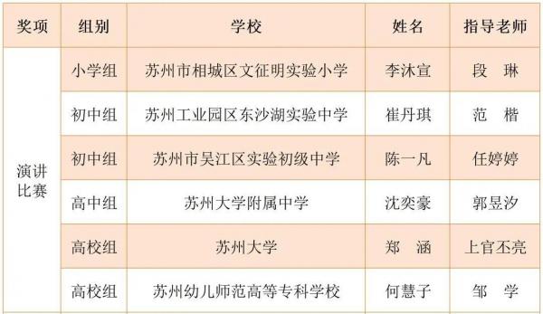 来自苏州幼儿师范高等专科学校的谭张妍、苏州大学的胡青瑩从全省13个设区市和103所高校中杀出重围,以第一名的成绩分别荣获素养竞赛高中组和高校组特等奖。之后,两位同学还将代表苏州、江苏参加教育部全国总决赛。