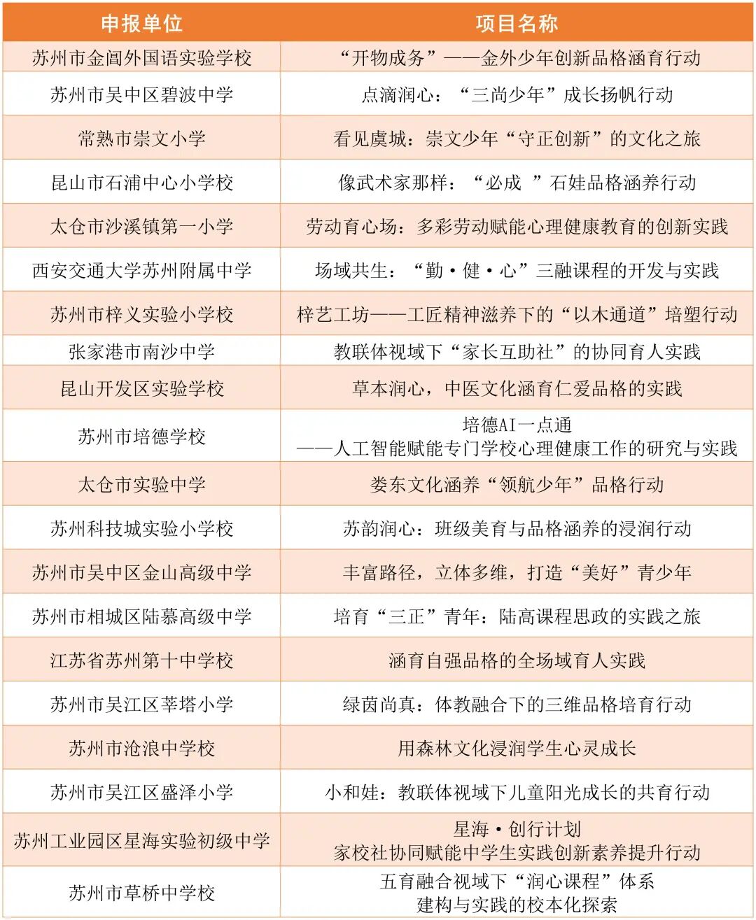 根据省教育厅办公室《关于做好2025年基础教育内涵建设项目申报工作的通知》(苏教办基函〔2025〕2号)精神,在各县级市(区)推荐申报基础上,经市级答辩评审,评选出第九批市级中小学生品格提升与心理健康教育项目20个。