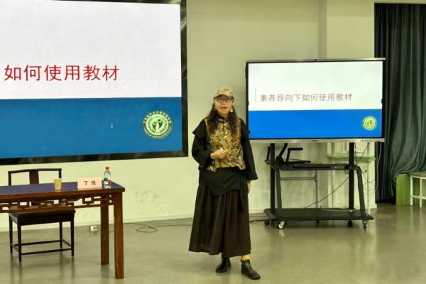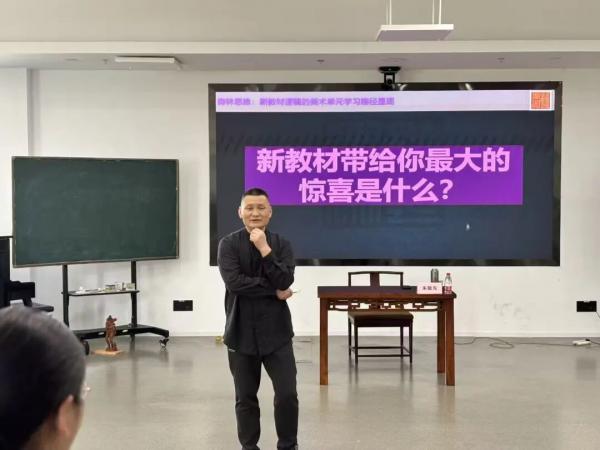江苏省美术教研员丁悦老师围绕《素养导向下的教材使用》,以互动研讨的形式营造出浓厚的学术氛围,强调“以学为中心”的教学理念,系统指导教师如何在素养导向下优化教材运用,提升课堂实效。