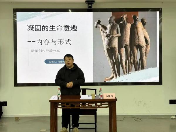 培训进一步延伸至美术领域。苏州科技大学马俊伟老师以《凝固的生命意趣——内容与形式》为题,分享了雕塑创作的心得与技法,并通过现场人物泥塑示范,生动呈现造型关键,为教师夯实专业基础提供了直观而富有启发性的指导。
