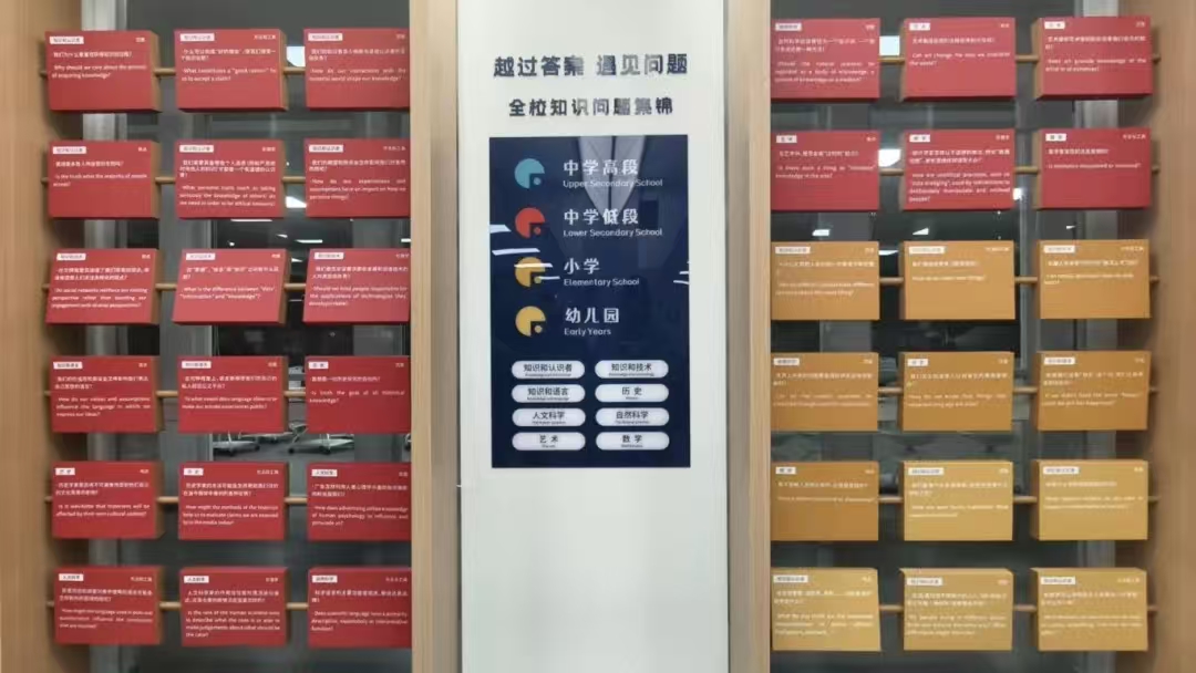 从幼儿园阶段的“消防员的职责是什么”,到中学阶段的“数学是被发现还是发明的”,每一个问题都是对自我与世界逐步深入的探寻。正如墙上所写的“越过答案,遇见问题”,学校坚信:从具体问题到漫长人生,向来没有统一的标准答案,孩子们那份独有的思辨力十分宝贵。教育者需以认知脚手架为阶,在关键处适时退场,助力孩子蜕变为既能独立思考、又能自主学习的生命个体。