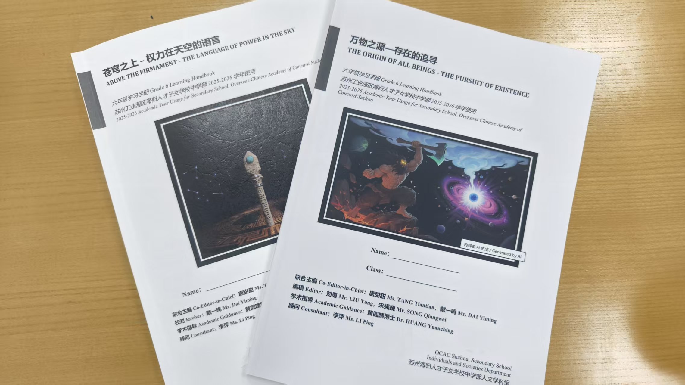 而这样的教研教学,在海归是常态,而且有学校自己的校本材料。黄博士拿出了两本厚厚的装订材料,她认为:深耕教研能成就更好的教育。因此,我们坚持全员教研与跨学科备课。今年暑假,我们将九年的教学沉淀,注入这本全面升级的校本化课程手册中。