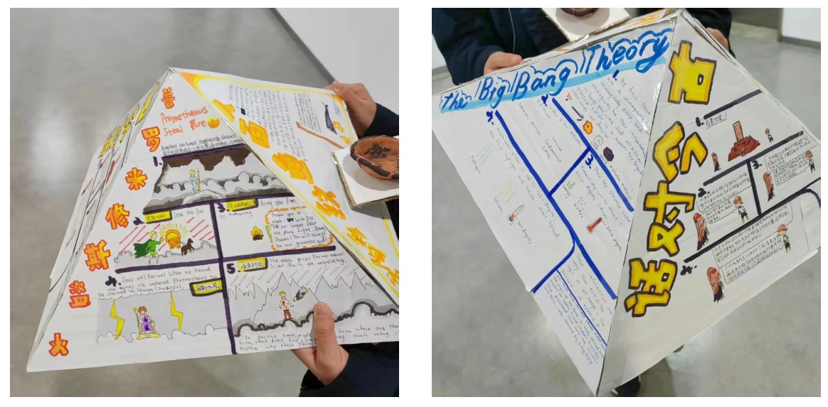 翻开材料,每个单元既包含国家课程多个核心知识,又设置开放性探究问题,确保教学不偏离本质,又能激发创新。例如:中教与外教团队会通过反复磨课,共同设计“万物之源”,探讨“不同时代与文化如何解释世界的起源与人类的存在”。