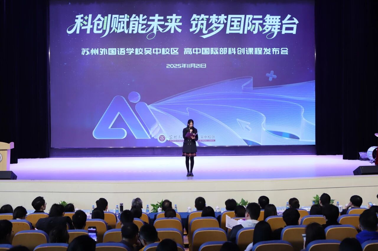11月21日,苏州外国语学校吴中校区高中国际部成功举办"A-Level科创课程"发布会,正式推出以"科创赋能未来,筑梦国际舞台"为理念的创新型课程体系。此举标志着该校在拔尖创新人才早期培养方面迈出重要步伐。
