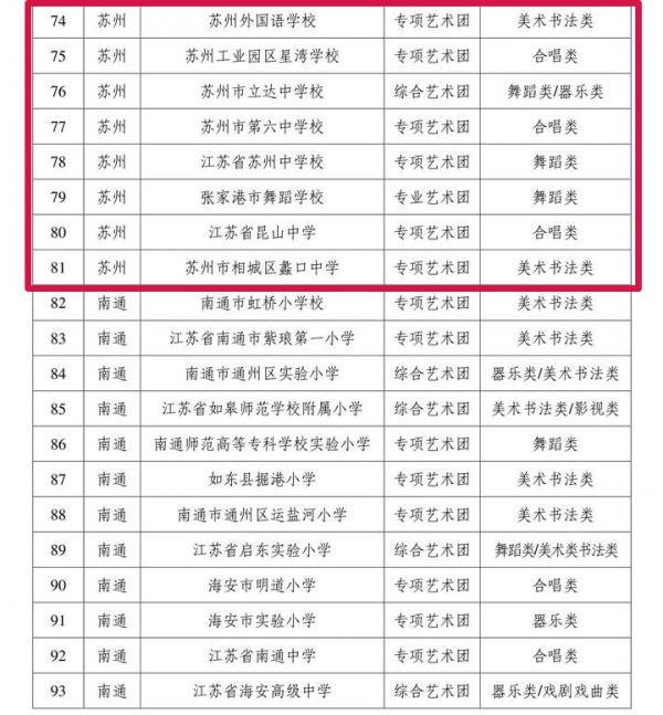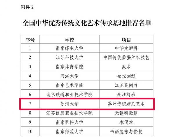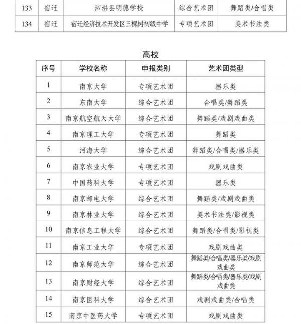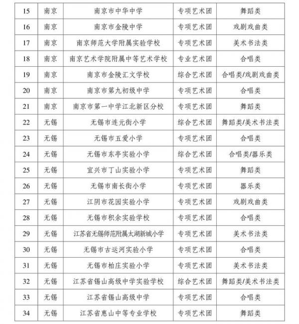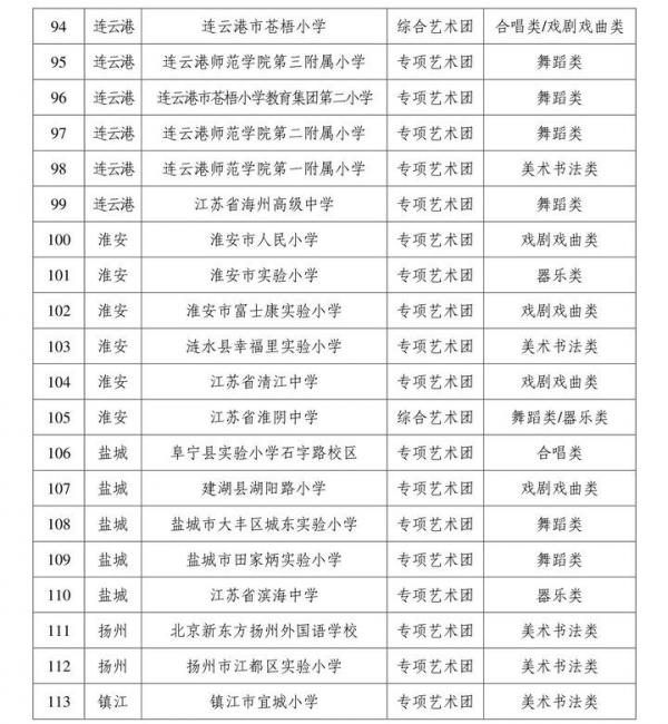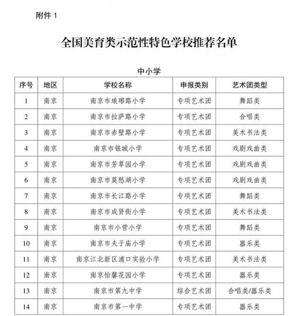 经过江苏省教育厅材料审核、专家遴选,拟推荐省内134所中小学和26所高校申报全国美育类示范性特色学校,推荐10个省中华优秀传统文化传承基地申报全国中华优秀传统文化传承基地。