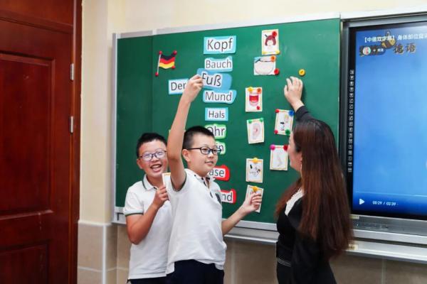 作为国际化教育的重要载体,园外自小学四年级起开设日语、德语小语种选修课程,以“文化理解 + 语言应用”为双核驱动,通过沉浸式情景教学与跨文化实践活动,培养学生语言能力与国际包容心态,助力学生拓宽全球视野,成长为具有国际竞争力的未来人才。
