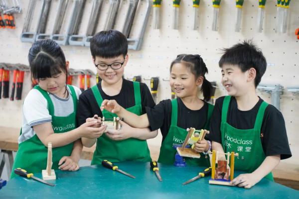 园外投资打造了规模宏大、体系完整的木工教室,将“乐木课堂”纳入必修课程。通过项目式教学融合多学科知识,专业指导下学生动手完成木作,锻炼创造力、动手能力与立体思维。