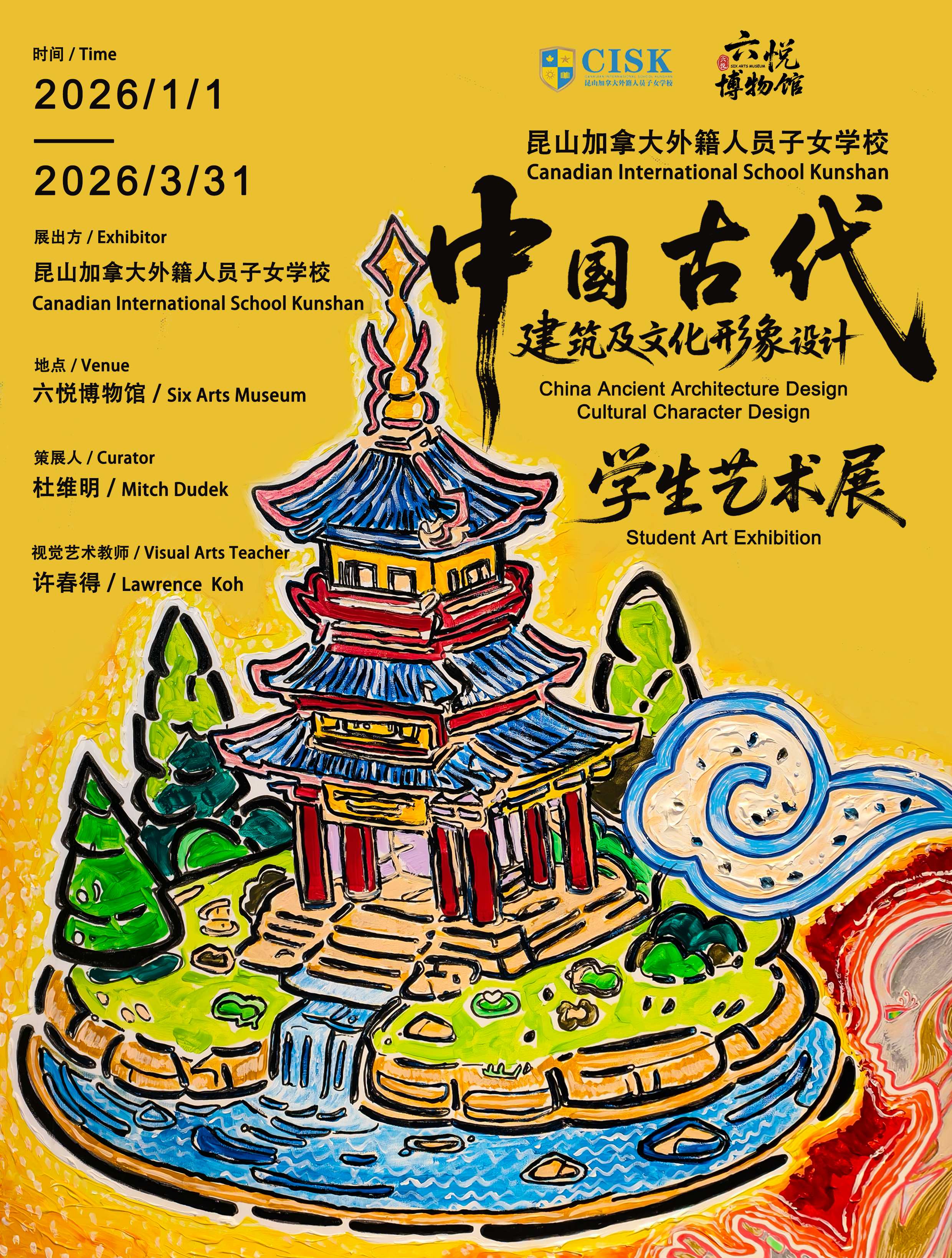 近日,中国古代建筑及文化形象设计学生艺术展在六悦博物馆正式开幕。展览由昆山加拿大外籍人员子女学校初高中学生围绕“中国古代建筑及文化形象设计”主题创作,集中呈现了学生们在艺术探究与实践中的丰硕成果。