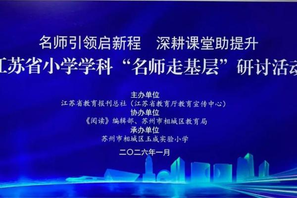 为推动基础教育高质量发展,促进优质教育资源共享,发挥骨干教师示范引领作用,近日,由江苏教育报刊总社(江苏省教育厅教育宣传中心)主办,《阅读》编辑部、相城区教育局协办的江苏省小学学科“名师走基层”研讨活动在相城区玉成实验小学顺利举行。
