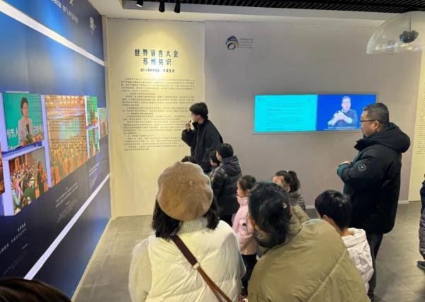 “这就是世界语言大会《苏州共识》!”在讲解员的带领下,孩子们走进馆内,认真聆听关于这场国际语言盛事的详细介绍,眼神中充满向往与自豪。从世界语言的分布,到江苏方言的趣味,通过影像资料和实物展示,他们仿佛穿越时空,回到了那个群贤毕至、共话未来的时刻,深刻感受到了语言作为沟通桥梁的重要作用。