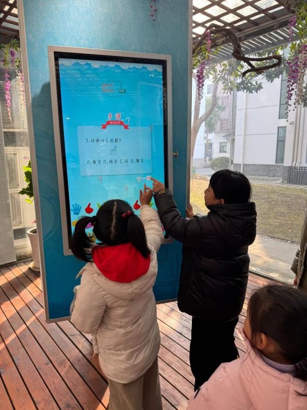 面对互动大屏幕上的语言知识问答,孩子们化身“最强大脑”,争先恐后地举手抢答。